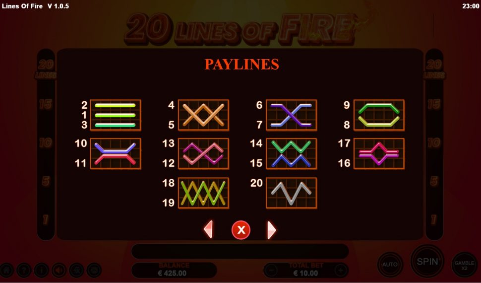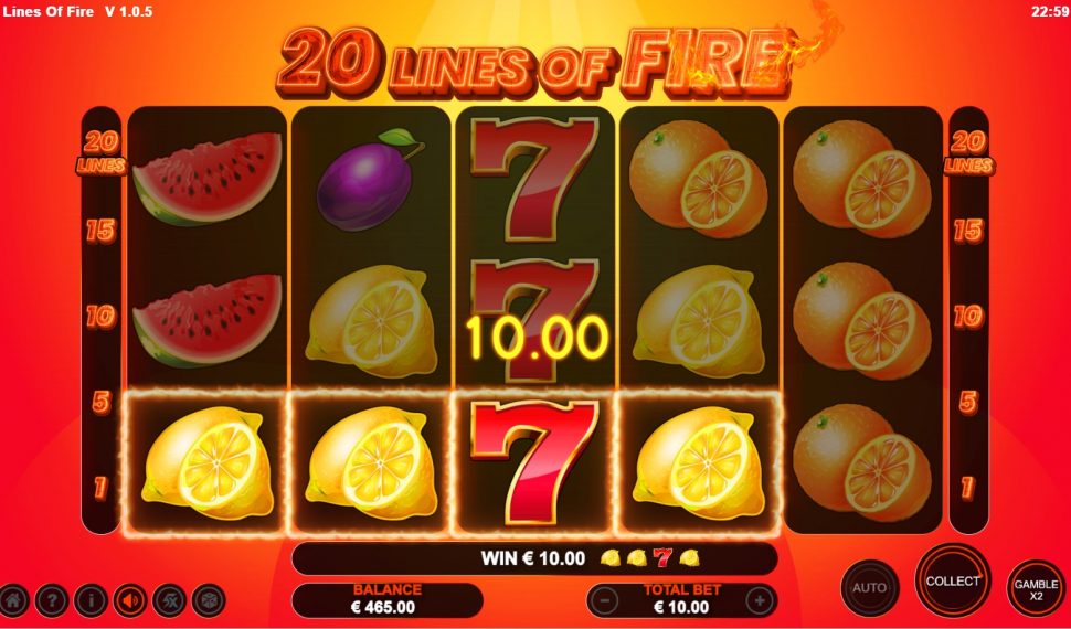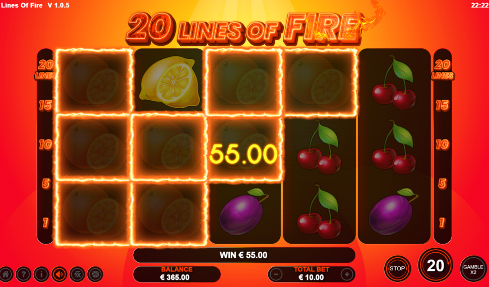 🔥 Immerse yourself in the classic charm of 20 Lines of Fire, boasting 20 paylines across 5 reels adorned with timeless fruit symbols!