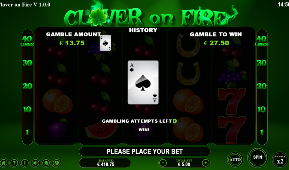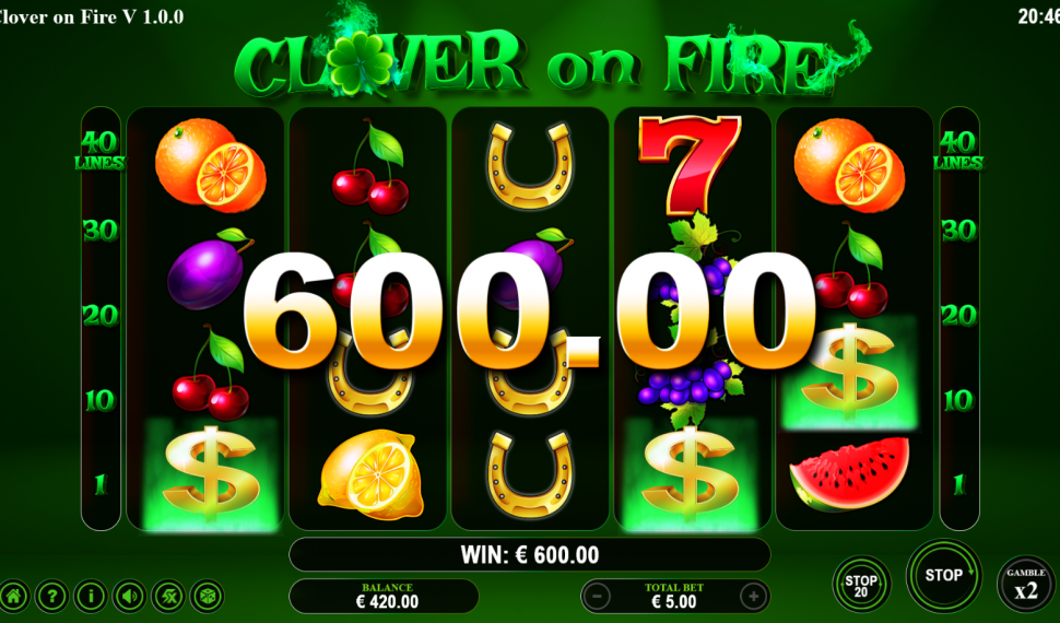 🔥 Immerse yourself in the thrill of Clover on Fire, a beloved slot game boasting 40 fixed paylines across 5 dynamic reels adorned with 11 classic symbols!